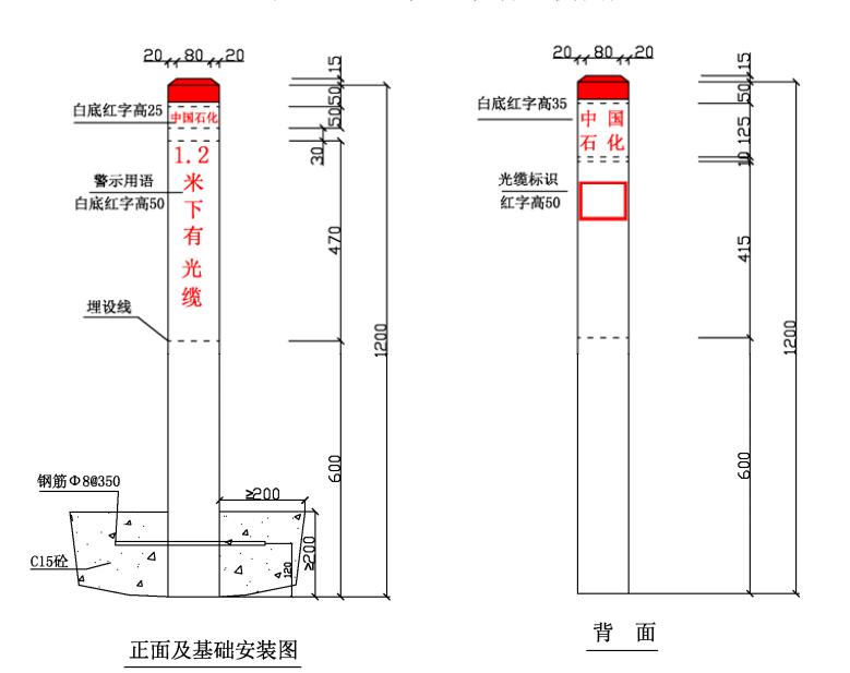 ⑴ 加密樁/通信標識均標注中國石化名稱、管道名稱、警示用語、管理單位和聯(lián)系電話。